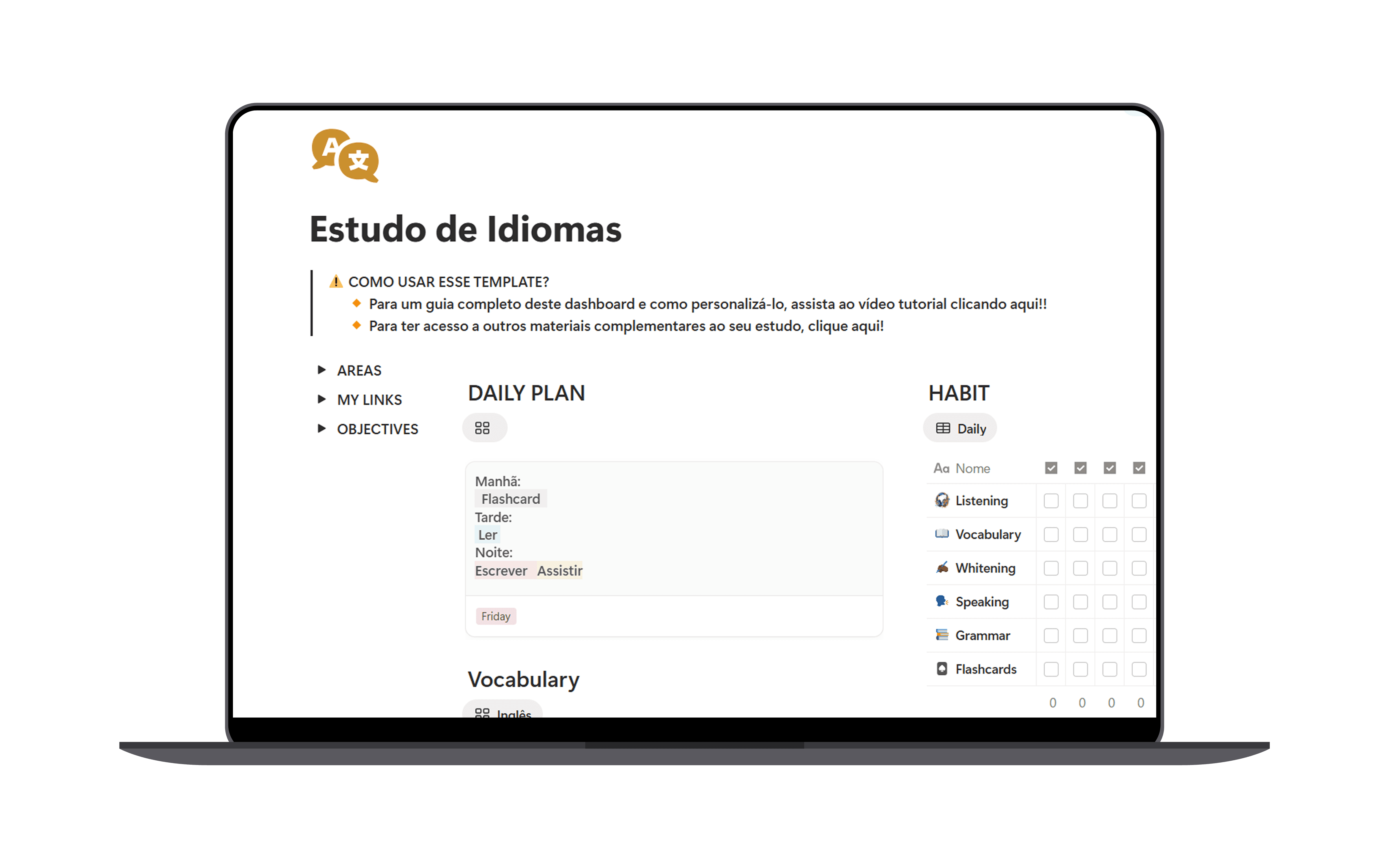 Ao adquirir o Cronograma de Inglês no Notion, você recebe: